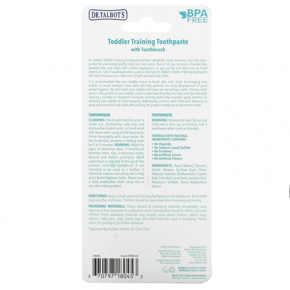 доктором Зубная паста для тренировок для малышей от Talbot дарит восхитительную фруктовую свежесть, которую любят дети, и идеально подходит для популяризации здорового ежедневного ухода за полостью рта. Лучше всего то, что наша формула не содержит фторидов и парабенов и изготовлена из натуральных ингредиентов, поэтому вы можете быть уверены, что она не содержит агрессивных химикатов. Безопасно при проглатывании и в соответствии с рекомендациями. Зубная паста для малышей Talbot поможет продемонстрировать яркую и безупречную улыбку вашего малыша.