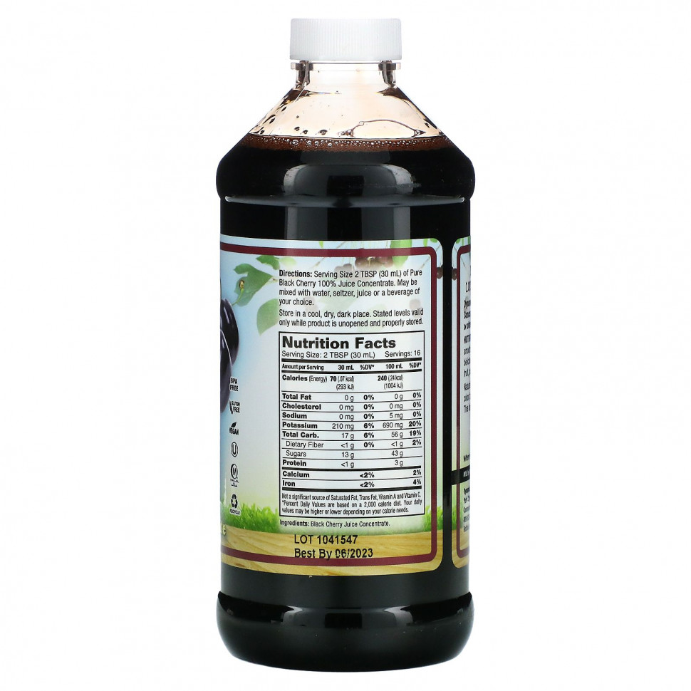 Чистый концентрат сока черной вишни Dynamic Health® не содержит подсластителей, консервантов и других добавок.