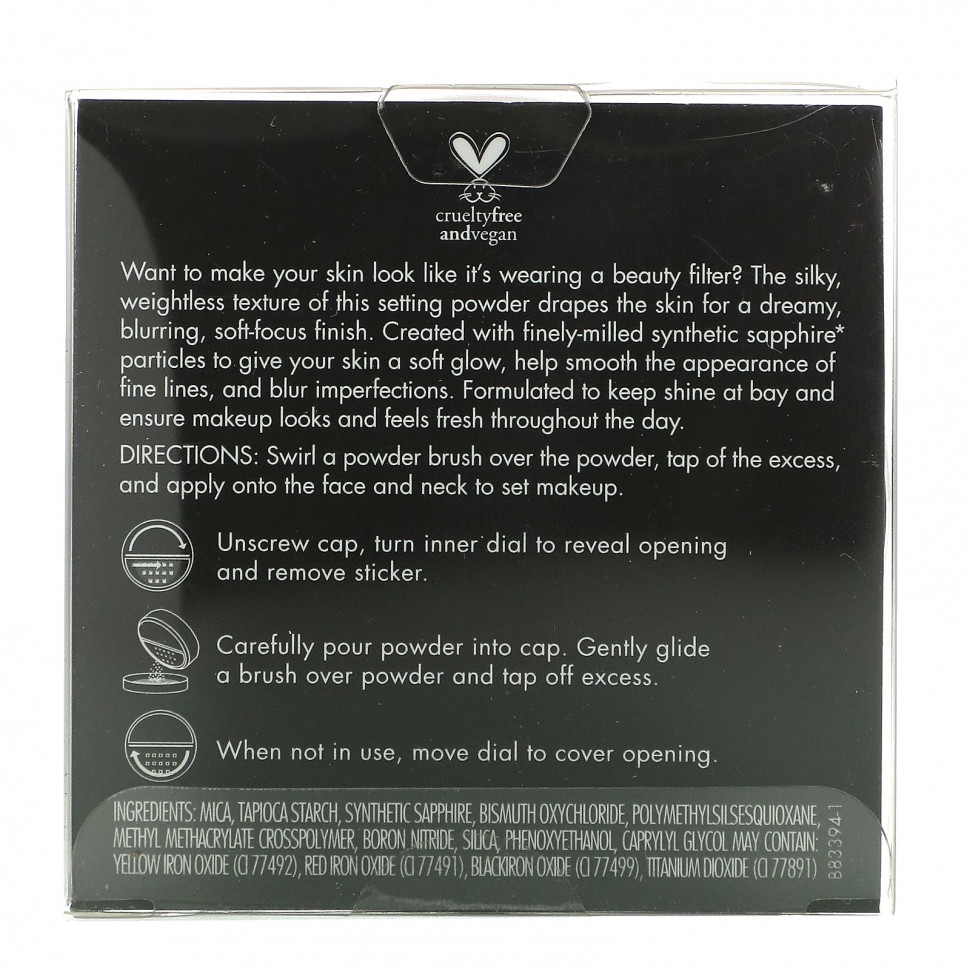 Вы хотите, чтобы в реальной жизни ваша кожа выглядела идеально, словно после фотошопа? Шелковистая, невесомая текстура этой закрепляющей пудры обволакивает кожу, создавая идеальный, гладкий и мягкий финиш. Пудра состоит из мельчайших частиц синтетического сапфира, которые придают вашей коже мягкое сияние, помогают разгладить мелкие морщинки и скрыть несовершенства кожи. Эта пудра создана для контроля жирного блеска и поддержания свежего внешнего вида кожи в течение дня.
