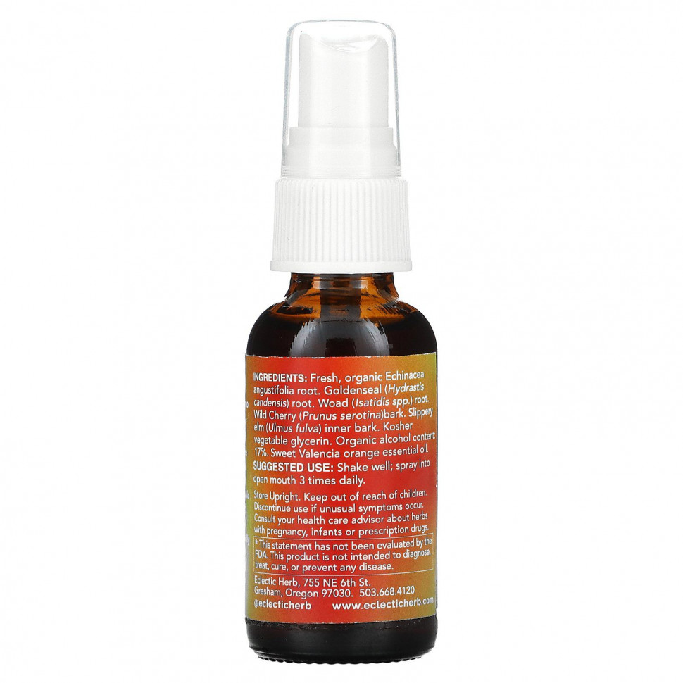 Сертифицированная органическая эхинацея и желтокорень сначала экстрагируются спиртом для обеспечения их высокой эффективности, затем спирт удаляется с помощью уникальной технологии экстрактора Lloyd Cold Still, чтобы сохранить оптимальную стойкость без сильной обработки.