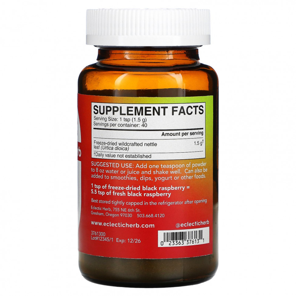 Крапива нашего производства собирается в дикой природе и сублимируется небольшими партиями. Сублимационная сушка — лучший метод сохранения, поскольку при этом питательные вещества естественным образом концентрируются в растении, удаляется только вода. Не содержит искусственных компонентов — наполнителей, подсластителей, добавок и консервантов.