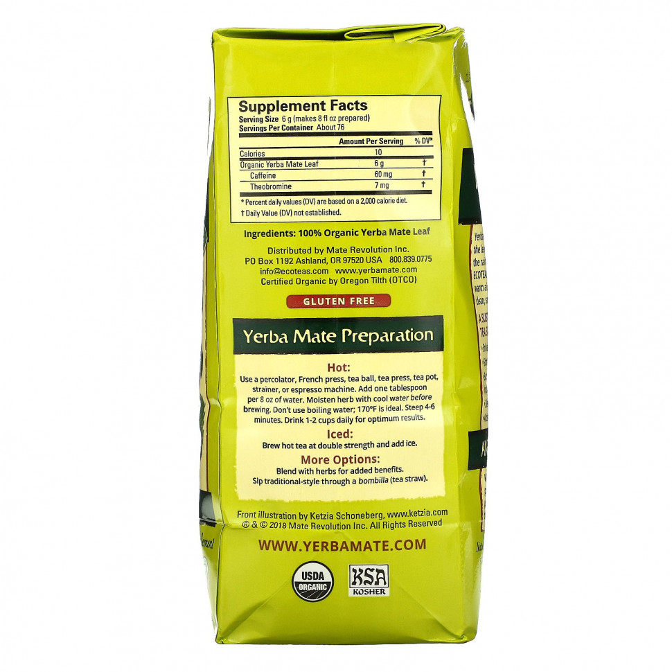 Чай йерба мате производят из листьев падуба, произрастающего в тропических лесах Южной Америки. Листья чая йерба мате EcoTeas обладают оригинальным мягким вкусом за счет того, что их высушивают при помощи теплого воздуха, не подвергая воздействию дыма.