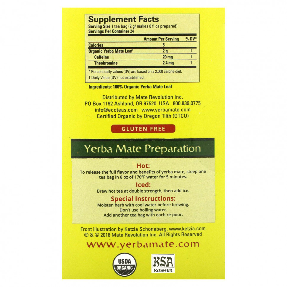 Чай мате йерба заваривают из листьев падуба, произрастающего в тропических лесах Южной Америки. Йерба мате из Ecoteas сушат на теплом воздухе, а не на дыму, чтобы вкус был чистым и мягким.