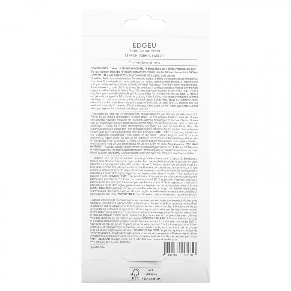 Как удалить: Нанесите несколько капель сыворотки для снятия макияжа по краям полосок. Дайте полоске впитаться в течение 30 секунд и с помощью палки для ногтей медленно снимите полоску с краев. Не снимайте кожуру с силой.