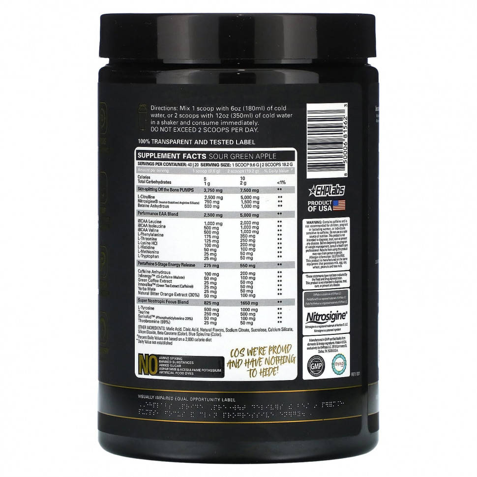 • 1,5 г Nitrosigine® * • 5 г L-цитруллина * • 1 г безводного бетаина * для расщепления кожи, разрушения костей и «питоновых» вен