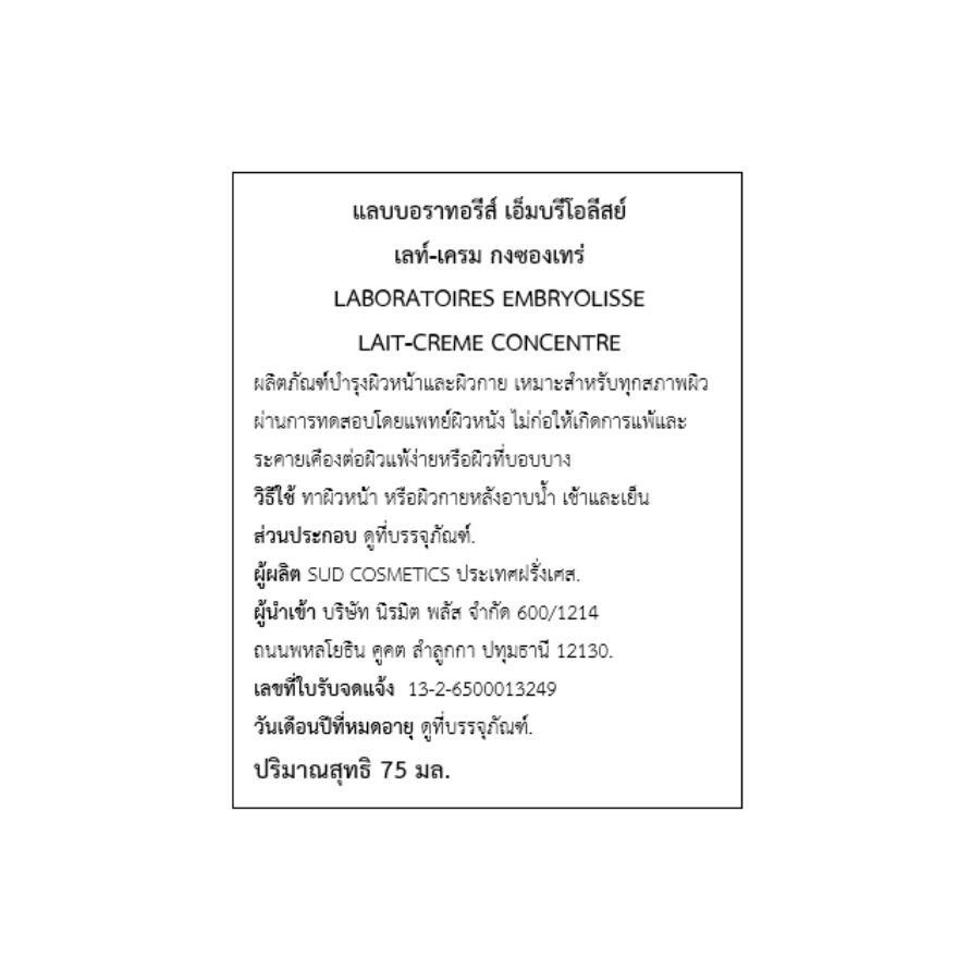 EMBRYOLISSE LAIT CREME CONCENTRE is the only beauty product that cleanses, hydrates, nourishes and protects even the most sensitive skins. Formulated by a dermatologist, validate by make-up artists and used on celebrities for a perfect skin result on camera This all round product is their secret to beautiful skin. Multi-functional, nourishing and moisturizing, it leaves a veil of softness and suppleness on all skin types, even the most fragile. A GIFTED SKIN CARE : 6-in-1 multi purpose functionality : a moisturizer, make-up base, moisturizing mask, make-up remover, milk and body lotion, it can also be used as a soothing after shave. A short winning formula including these essential ingredients : shea butter to nourish and relax the skin, aloe vera and soy proteins to moisturize, beeswax to soften.