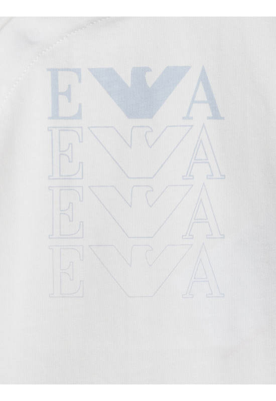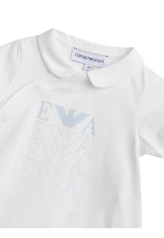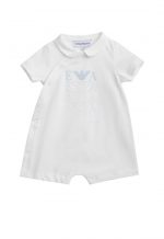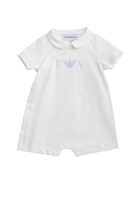 Infant Jumpsuit from the brand EMPORIO ARMANI, features adorable designs crafted from high-quality fabrics. Children can wear them comfortably all day long without any irritation to their skin. This allows kids to move freely and enjoy various activities confidently. The versatile styles can be worn for any occasion, enhancing the look with charm and modernity.