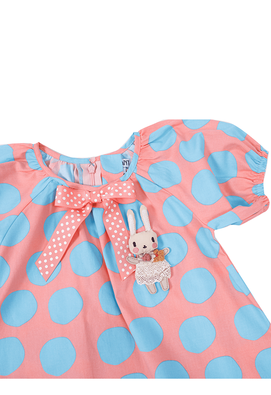 ENFANT — Girl’s Dress Set, Circle Pattern EE7T82 — Pink/Green Blue (For children aged 6 months — 6 years)
