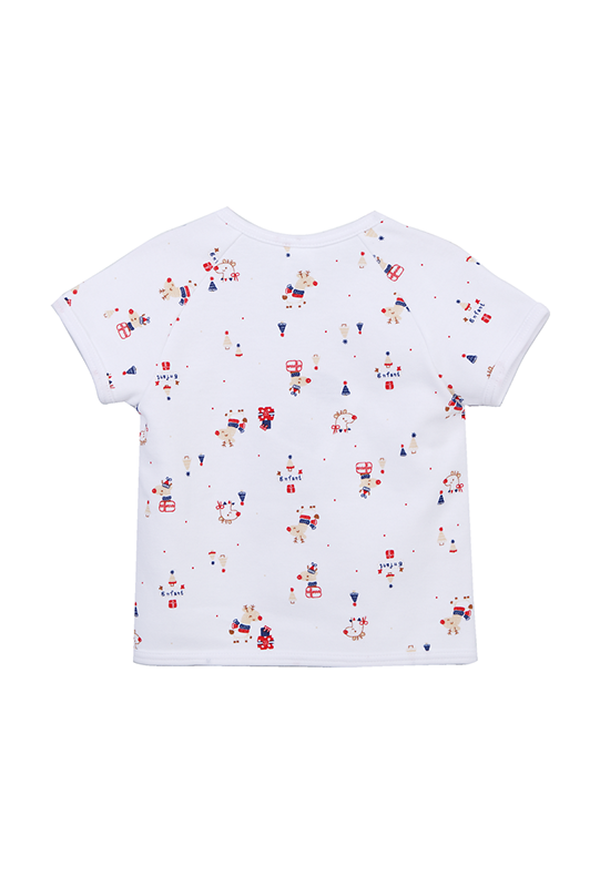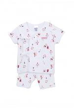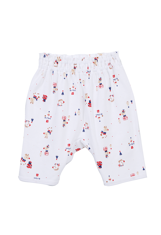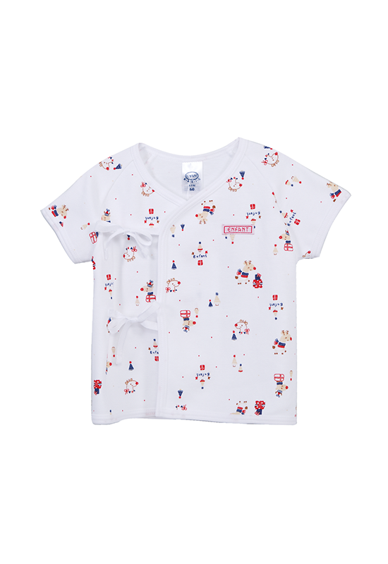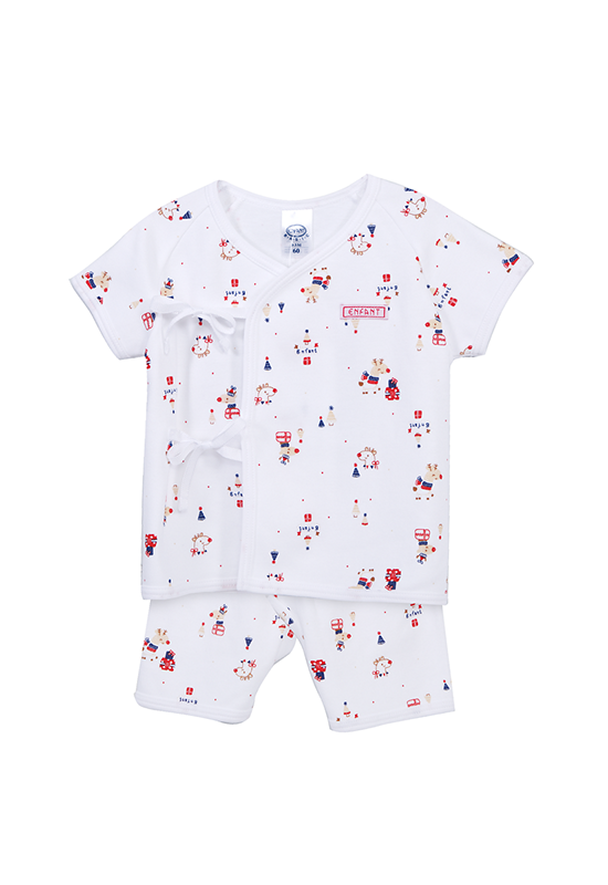 ENFANT — Set of short-sleeved tie-up shirt with 3/4 pants, little deer pattern — white (for children aged 0-6 months)