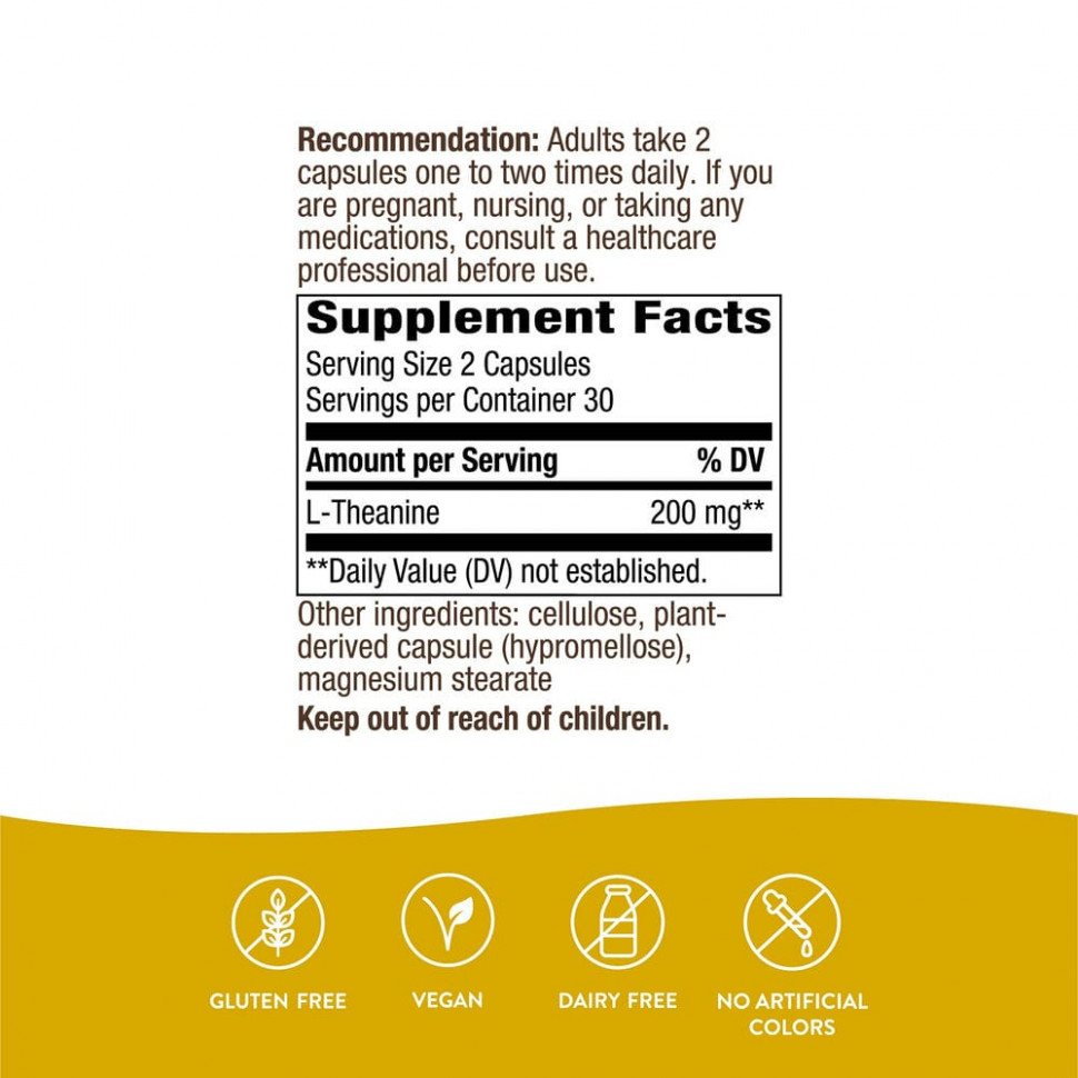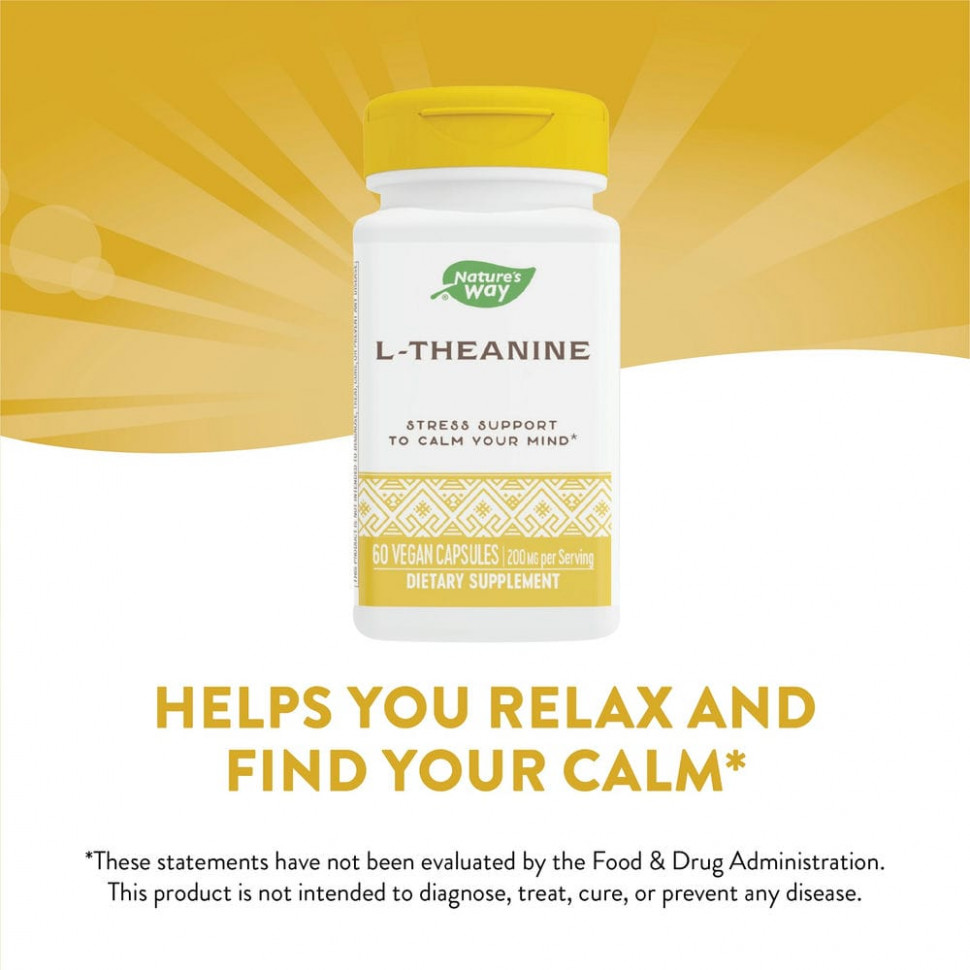 L-теанин — это аминокислота. Запатентованная форма L-теанина от Suntheanine® способствует расслаблению и помогает сохранять спокойствие в стрессовых ситуациях. Поддерживает уравновешенное и спокойное состояние, не снижая повседневной активности.