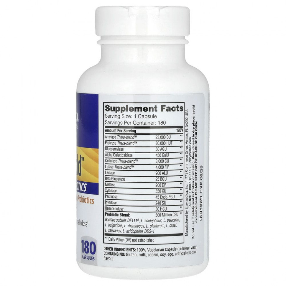 Средство Digest Gold™ с пробиотиками содержит усовершенствованную ферментную формулу, которая расщепляет углеводы, жиры, клетчатку и белок. Пробиотики оказывают дополнительную поддержку пищеварению, усиливая выработку ферментов и способствуя регулярной работе кишечника.