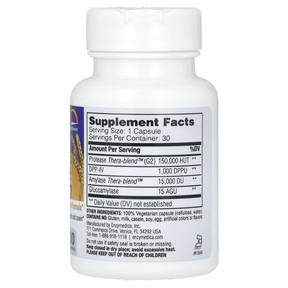 Добавка GlutenEase™ для переваривания глютена с повышенной силой действия содержит ферменты протеазы Thera-blend™ (G2) и DPP-IV (дипептидил-пептидазу-4), и обладает способностью переваривать пищу, содержащую глютен и казеин, которая вдвое больше той, что имеет стандартная добавка GlutenEase. Ферменты амилазы, переваривающие крахмал, способствуют перевариванию углеводной части зерновых, например, пшеницы, которые содержат глютен.