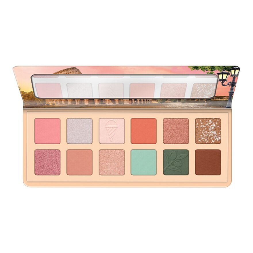 Let yourself be enchanted by the subtle and romantic colour world of Rome and try the Roma eyeshadow palette from Essence.Twelve different highly pigmented colours from rose to turquoise and brown give your look a relaxed vibe. The shadows blend perfectly into your skin thanks to their soft texture.The inside features 12 shades in square pans, which are a bit bigger than usual I feel like. This palette is a lot more neutral than the second one they released, which we will talk about in a future article. The Benvenuti a Roma palette features some beautiful rosey tones, some warm toned browns, and a pop of blue and green. It seems to match the packaging very well. I am not the biggest fan of neutral palettes, but this has a decent range of shades. There is also a good ratio of matte to shimmer shades