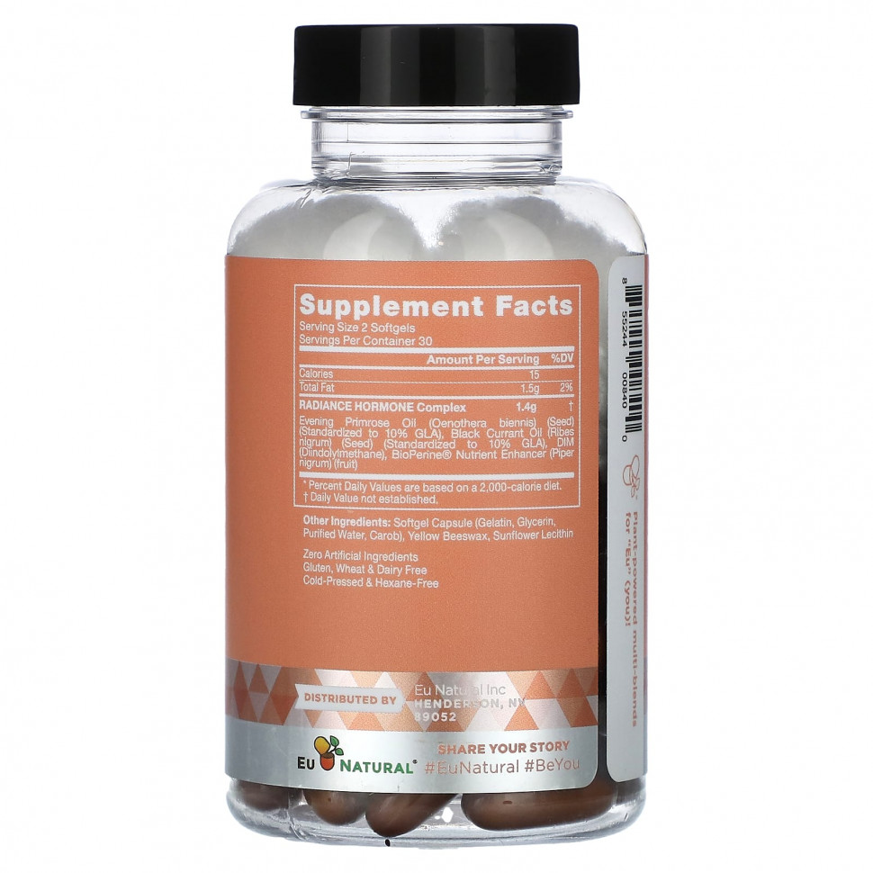 | Гормональный комплекс для сияния кожи Масло примулы вечерней (Oenothera biennis) (семена) (стандартизировано до 10% ГЛК), масло черной смородины (Ribes nigrum) (семена) (стандартизировано до 10% ГЛК), дииндолилметан (DIM), усилитель питательных веществ BioPerine® (Piper nigrum) ( фрукты) |