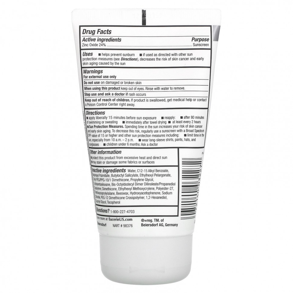 Минеральный детский солнцезащитный лосьон Eucerin Sun Sensitive с SPF 50 содержит минеральные солнцезащитные ингредиенты, которые помогают защитить кожу, поглощая, отражая и рассеивая UVA / UVB-лучи.