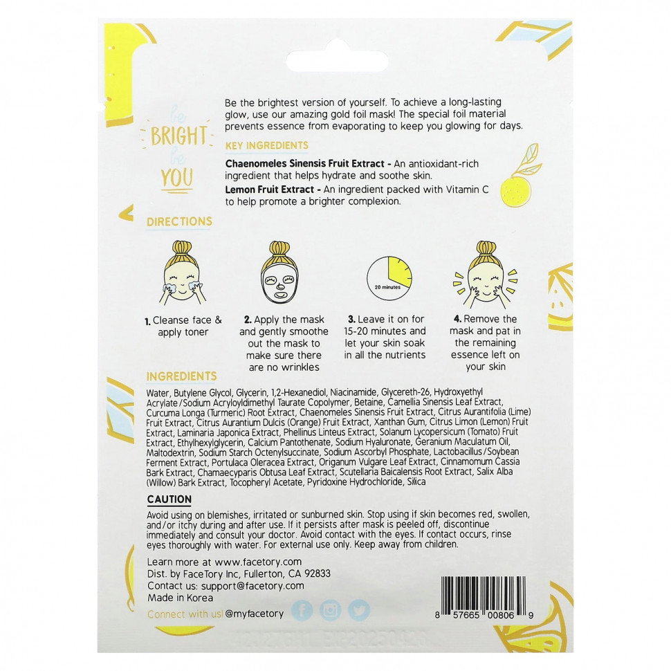 Будьте самой яркой версией себя. Чтобы добиться стойкого сияния, используйте нашу удивительную маску из золотой фольги! Специальный фольгированный материал предотвращает испарение эссенции и сохраняет сияние в течение нескольких дней.