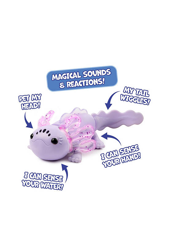 INTERACTIVE LIGHTS AND SOUNDS: Baby Axolotl features magical, rainbow lights and sounds! Out of the water, it really knows it’s you when it’s in your hand. You can even pet its head for different sounds and reactions.
