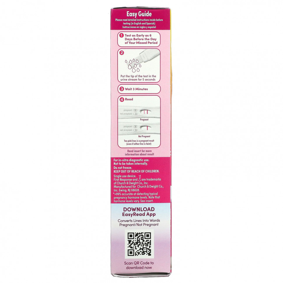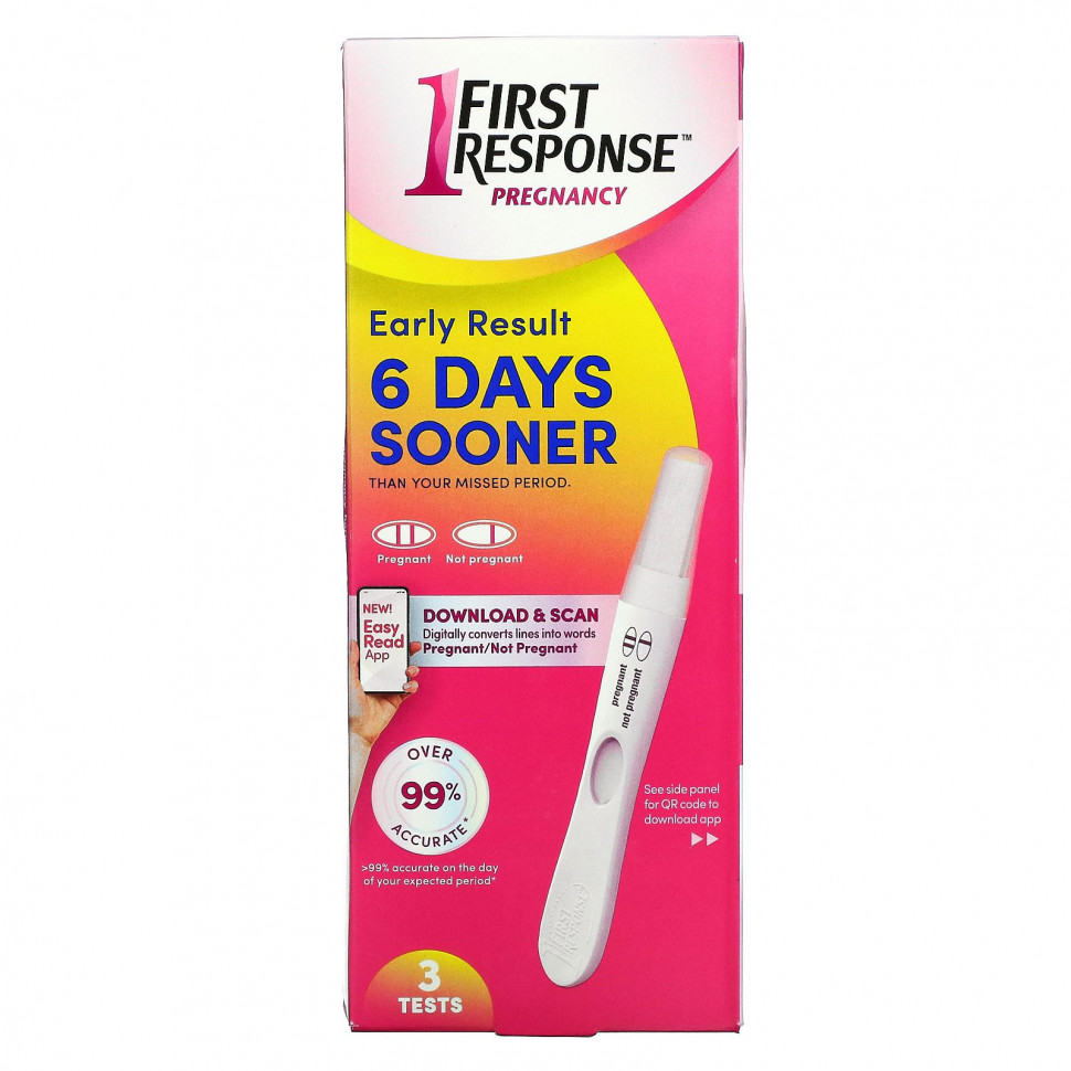 Что нужно знать о раннем тестировании… у некоторых беременных женщин количество гормона беременности в моче в день проведения теста может быть недостаточным для его определения. Количество гормона беременности увеличивается с течением времени. В ходе лабораторных исследований First Response™ обнаружил гормон беременности у 76% беременных женщин за 5 дней до начала ожидаемой менструации, у 96% беременных женщин за 4 дня до предполагаемой менструации, у >, 99% беременных женщин за 3 дня до начала предполагаемой менструации, у >, 99% беременных за 2 дня до начала ожидаемой менструации, у >, 99% беременных за 1 день до начала ожидаемой менструации и у >, 99% беременных в день начала ожидаемой менструации.