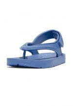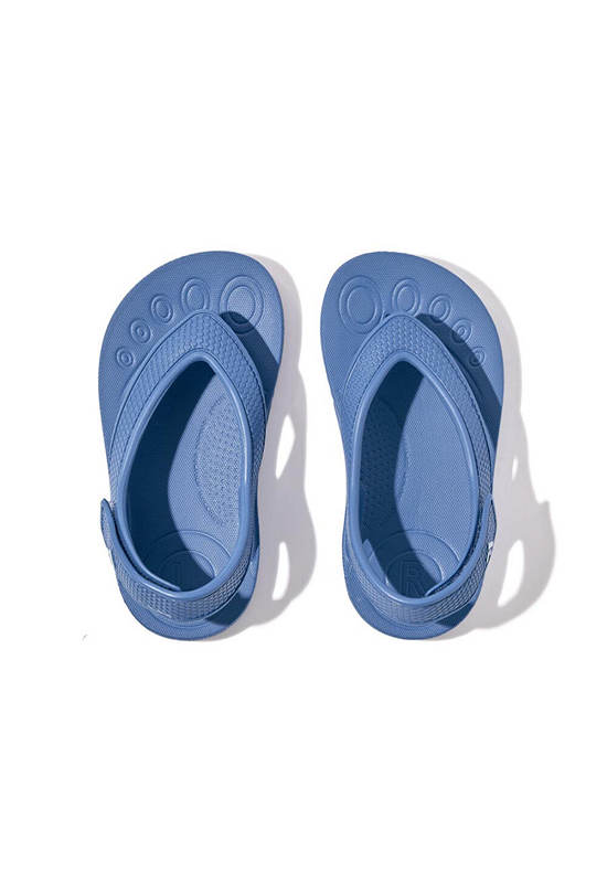 1. Making a splash. They share the pool-cool style and non-stop comfort of the adult version – but are biomechanically engineered for kids. Softer growing feet need shoes that won’t affect their natural development. So these light unisex sandals feature FitFlop’s iQushion™ Kids Junior sole: a wider, lower, stable base, with slight natural contouring, allowing freedom to move and space to grow. Made from soft, flexible, high-rebound air-foam, that bends with developing feet and lets them ‘feel’ the ground helping balance and coordination. On top, supersoft flexible rubber straps, have been fit-tested to ensure smaller feet are held correctly. Including a solid back strap that keeps things secure, however active your child. With an adjustable touch fastening for easy on/off. In bright easy-to-find colors or classic neutrals. Brilliant for the beach/park/garden. Waterproof and slip-resistant.