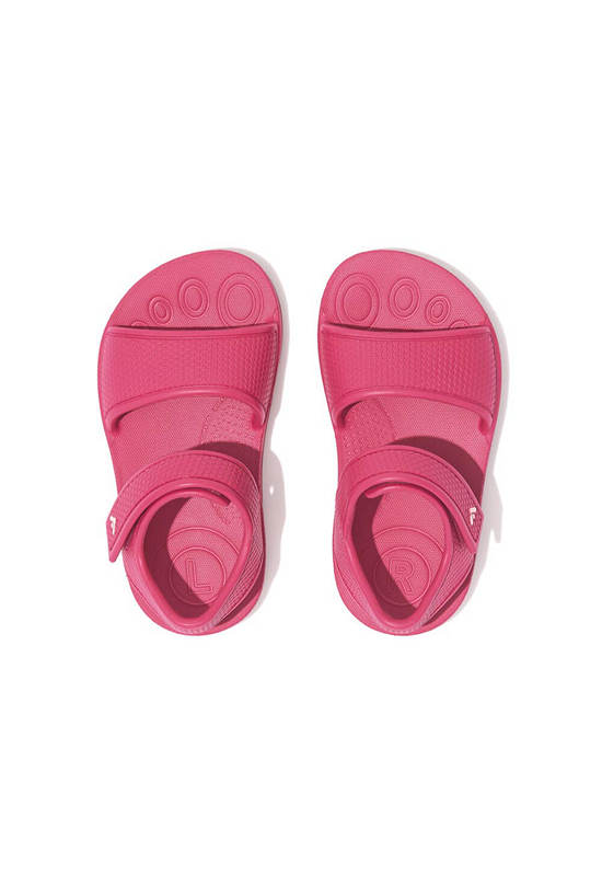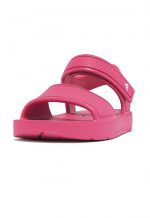 1. Making a splash. They share the pool-cool style and non-stop comfort of the adult version – but are biomechanically engineered for kids. Softer growing feet need shoes that won’t affect their natural development. So these light unisex sandals feature FitFlop’s iQushion™ Kids Junior sole: a wider, lower, stable base, with slight natural contouring, allowing freedom to move and space to grow. Made from soft, flexible, high-rebound air-foam, that bends with developing feet and lets them ‘feel’ the ground helping balance and coordination. On top, supersoft flexible rubber straps, have been fit-tested to ensure smaller feet are held correctly. Including a solid back strap that keeps things secure, however active your child. With an adjustable touch fastening for easy on/off. In bright easy-to-find colors or classic neutrals. Brilliant for the beach/park/garden. Waterproof and slip-resistant.