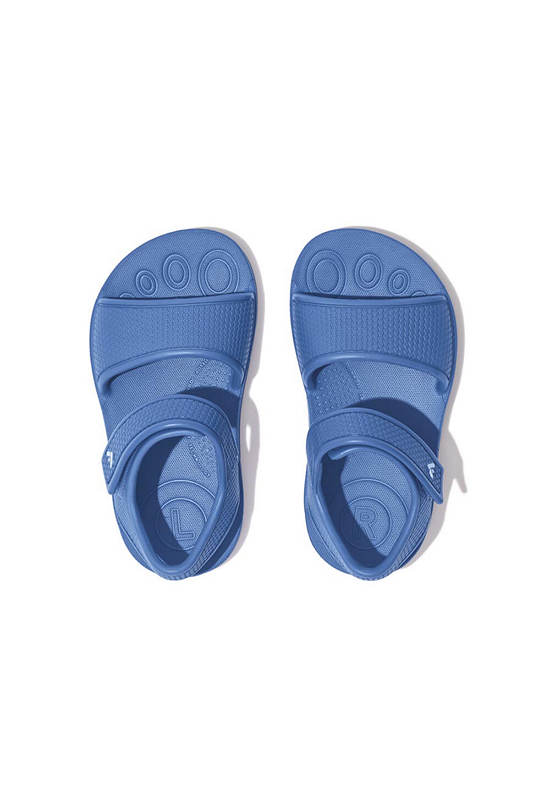 1. Making a splash. They share the pool-cool style and non-stop comfort of the adult version – but are biomechanically engineered for kids. Softer growing feet need shoes that won’t affect their natural development. So these light unisex sandals feature FitFlop’s iQushion™ Kids Junior sole: a wider, lower, stable base, with slight natural contouring, allowing freedom to move and space to grow. Made from soft, flexible, high-rebound air-foam, that bends with developing feet and lets them ‘feel’ the ground helping balance and coordination. On top, supersoft flexible rubber straps, have been fit-tested to ensure smaller feet are held correctly. Including a solid back strap that keeps things secure, however active your child. With an adjustable touch fastening for easy on/off. In bright easy-to-find colors or classic neutrals. Brilliant for the beach/park/garden. Waterproof and slip-resistant.
