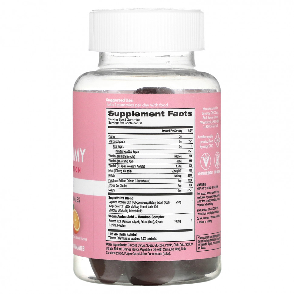 Наша жевательная формула из суперфруктов богата антиоксидантами A, C и E, а также содержит питательные для кожи ингредиенты, способствующие выработке коллагена, которые помогут вам выглядеть и чувствовать себя лучше. Он также содержит необходимые питательные вещества, которые поддерживают здоровье иммунной системы и клеток.