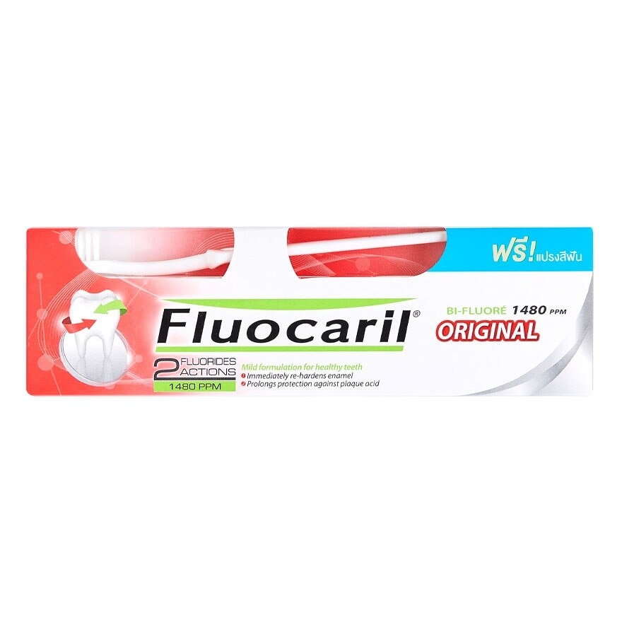 Fluocaril Original Toothpaste,to help give your teeth a protective shield and re-harden your enamel with a mild formulation