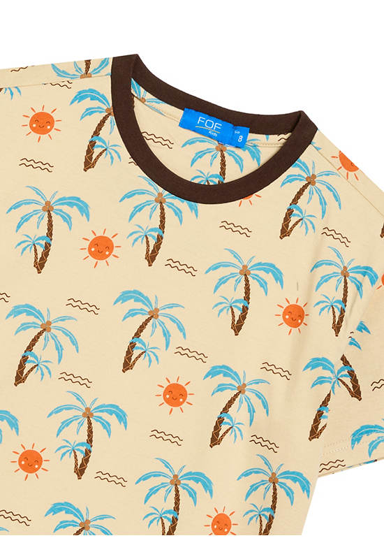 Boy T-Shirt Short Sleeves Crew Neck Coconut Tree Print
