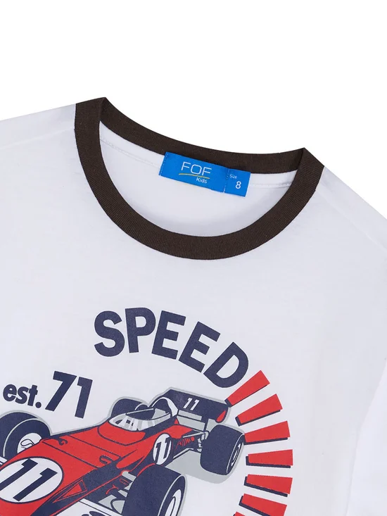 Short sleeves t-shirt for boys from FOF KIDS. It comes with cool racing style printed, detailed with black ribbed neckline, is colorful, and is comfortable. Guaranteed with high-quality 100% Cotton, makes your beloved kids feel soft with every movement, and enjoy activities. Easy to mix and match various styles, and suitable with their everyday look!