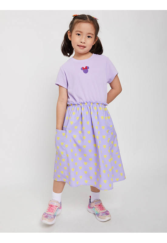FOF KIDS Girl Dress Disney Heart Printed Purple