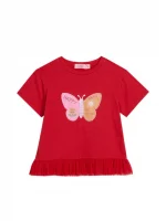 Girl T-Shirt Flutter Sleeves Buttlefly Print from FOF KIDS bright colors, comfortable to wear, made from good quality cotton, soft fabric and does not stretch or wrinkle. Children can be worn for a long time. Easy to clean. Children can wear it as often as them want. Enhance your cute look by mixing and matching in various styles. Whether it’s a skirt or pants. Let this T-shirt be your child’s favorite cloth. To be confident, bright and ready for adventure every day.