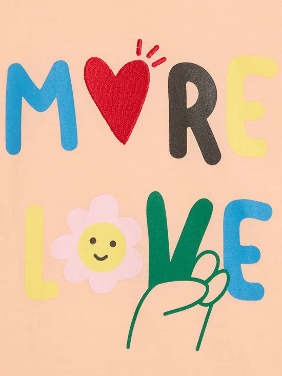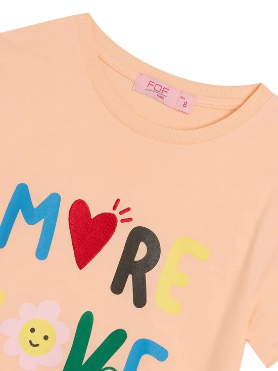Girl T-Shirt MORE LOVE Text Print from FOF KIDS bright colors, comfortable to wear, made from good quality cotton, soft fabric and does not stretch or wrinkle. Children can be worn for a long time. Easy to clean. Children can wear it as often as them want. Enhance your cute look by mixing and matching in various styles. Whether it’s a skirt or pants. Let this T-shirt be your child’s favorite cloth. To be confident, bright and ready for adventure every day.