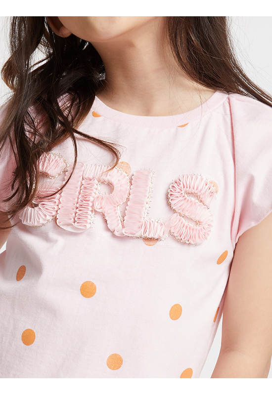 Girl T-Shirt Ruffled Sleeve Dot Design