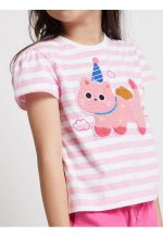 Girl T-Shirt Ruffled Sleeve Horizontal Stripe