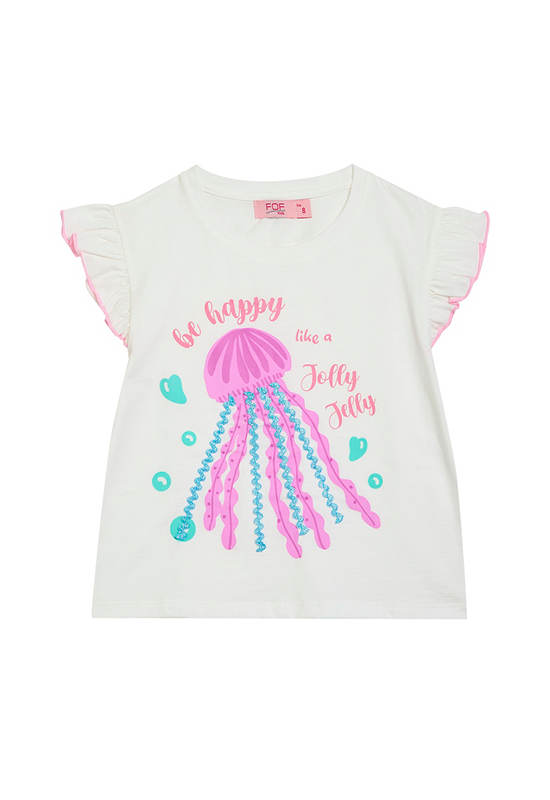 Girl T-Shirt Sleeveless Crew Neck Jelly Fish Print