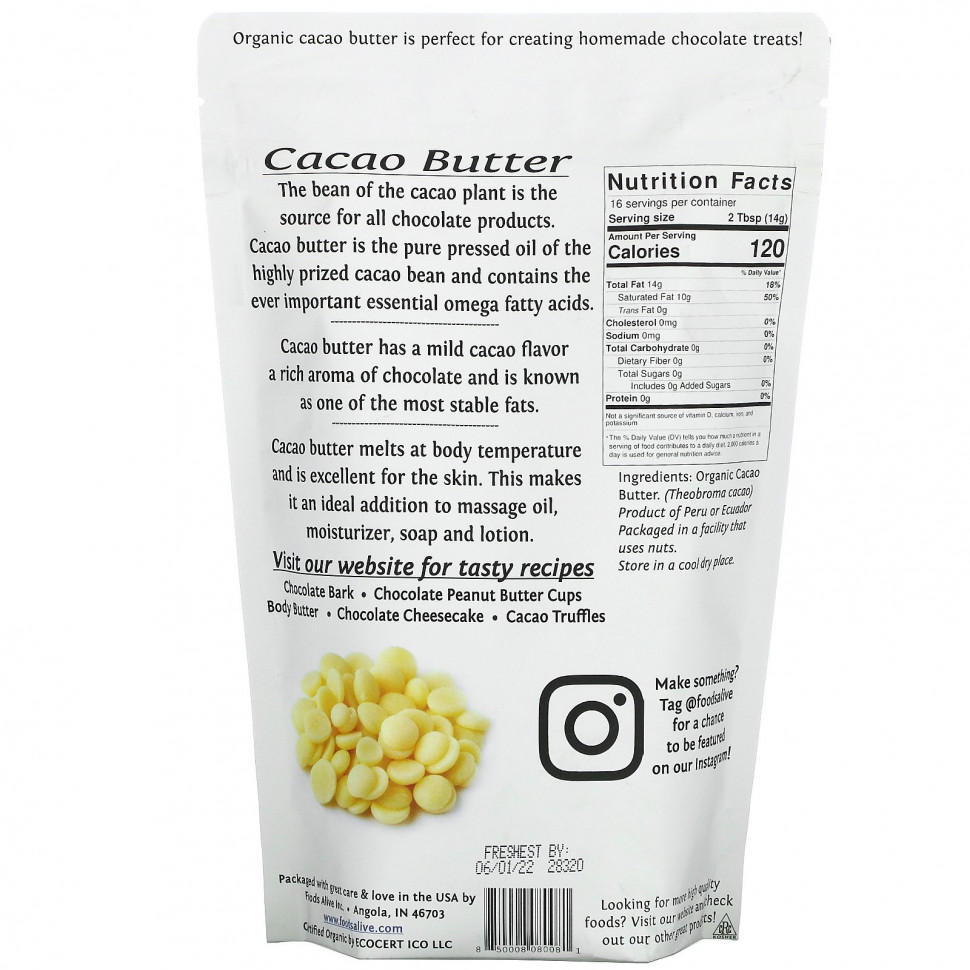 Масло какао имеет мягкий какао-вкус, богатый аромат шоколада и известно как один из самых стабильных жиров.