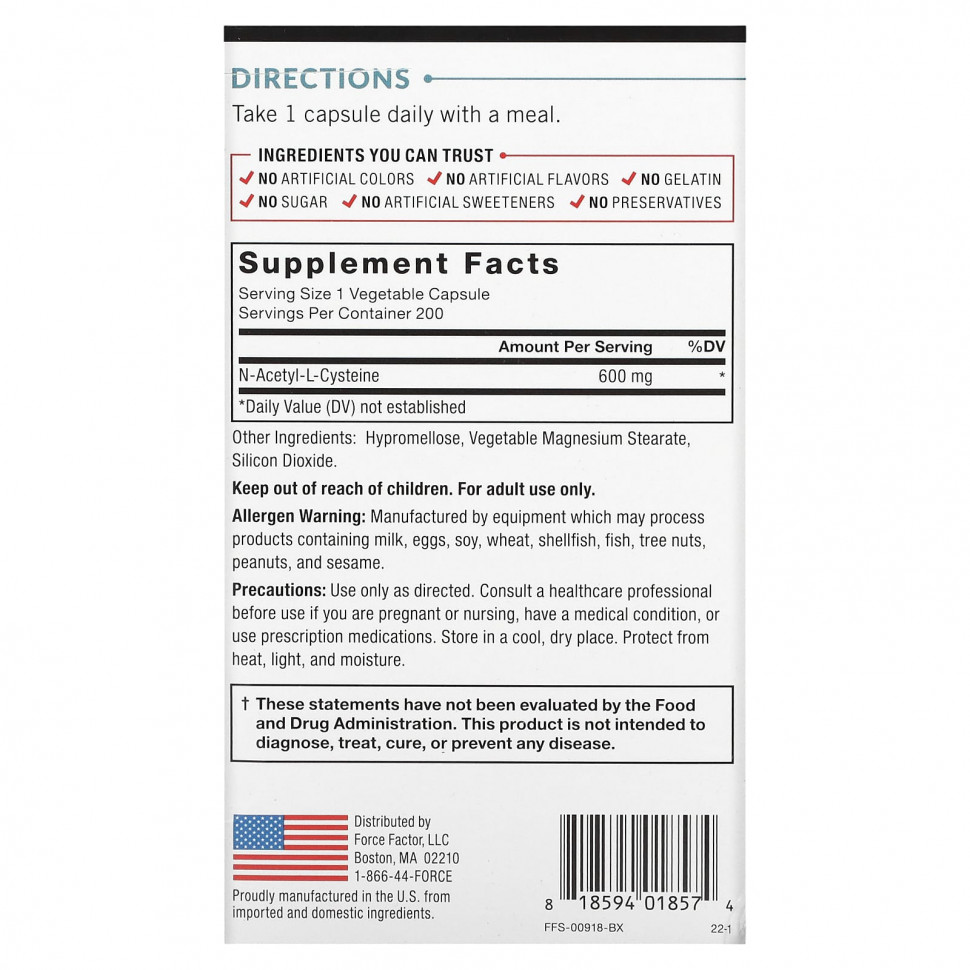 Каждая из этих капсул содержит 600 NAC — клинически изученную дозу этого эффективного соединения, разработанную для максимального воздействия и реальных результатов.
