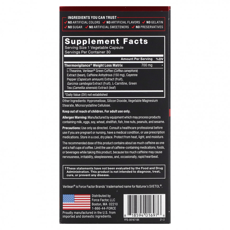 Клинические исследования показали, что Verilean помогает увеличить потерю веса более чем в два раза всего за 60 дней. Матрица для снижения веса Thermovigilance также содержит проверенные временем ингредиенты, такие как гарциния камбоджийская, кайенский перец и экстракт листьев зеленого чая, чтобы вы были уверены в том, что каждая капсула содержит множество мощных и эффективных ингредиентов, которые помогут вам в достижении ваших целей.