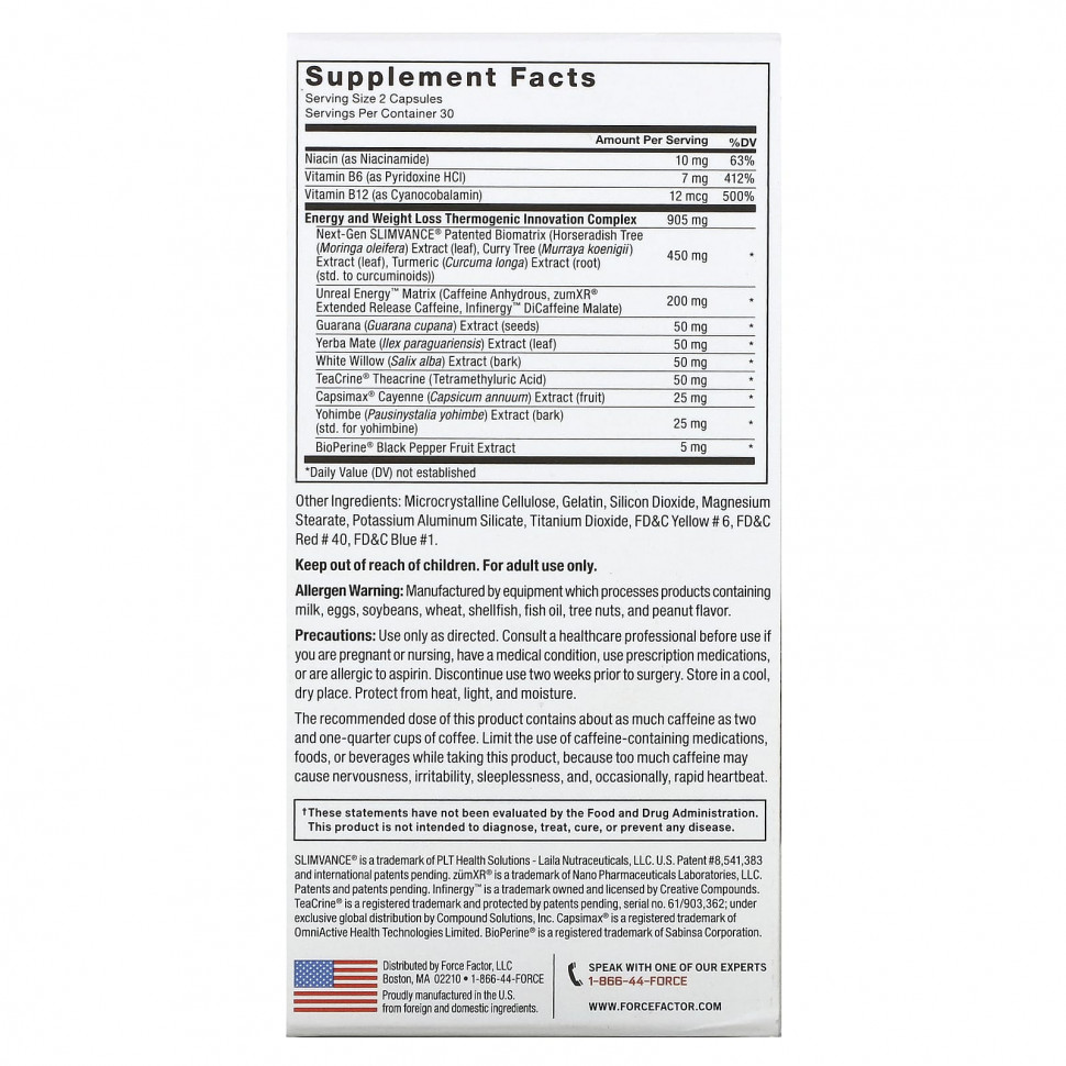 Что вы получите, если объедините энергетические соединения нового поколения с одним из самых значительных достижений в области снижения веса за последние 30 лет? результаты: В дополнение к SLIMVANCE®, обеспечивающему поистине революционные преимущества в снижении веса, эта инновационная формула включает 4иnbsp,фирменных энергетических ингредиента, а также несколько термогенных соединений премиум-класса, которые помогают ускорить ваш метаболизм для впечатляющего сжигания жира. Кроме того, в состав впервые включена запатентованная матрица Unreal Energy™, специально разработанная для обеспечения устойчивого подъема энергии в течение дня, чтобы помочь вам полностью раскрыть свой потенциал (Unleash Your Potential®).