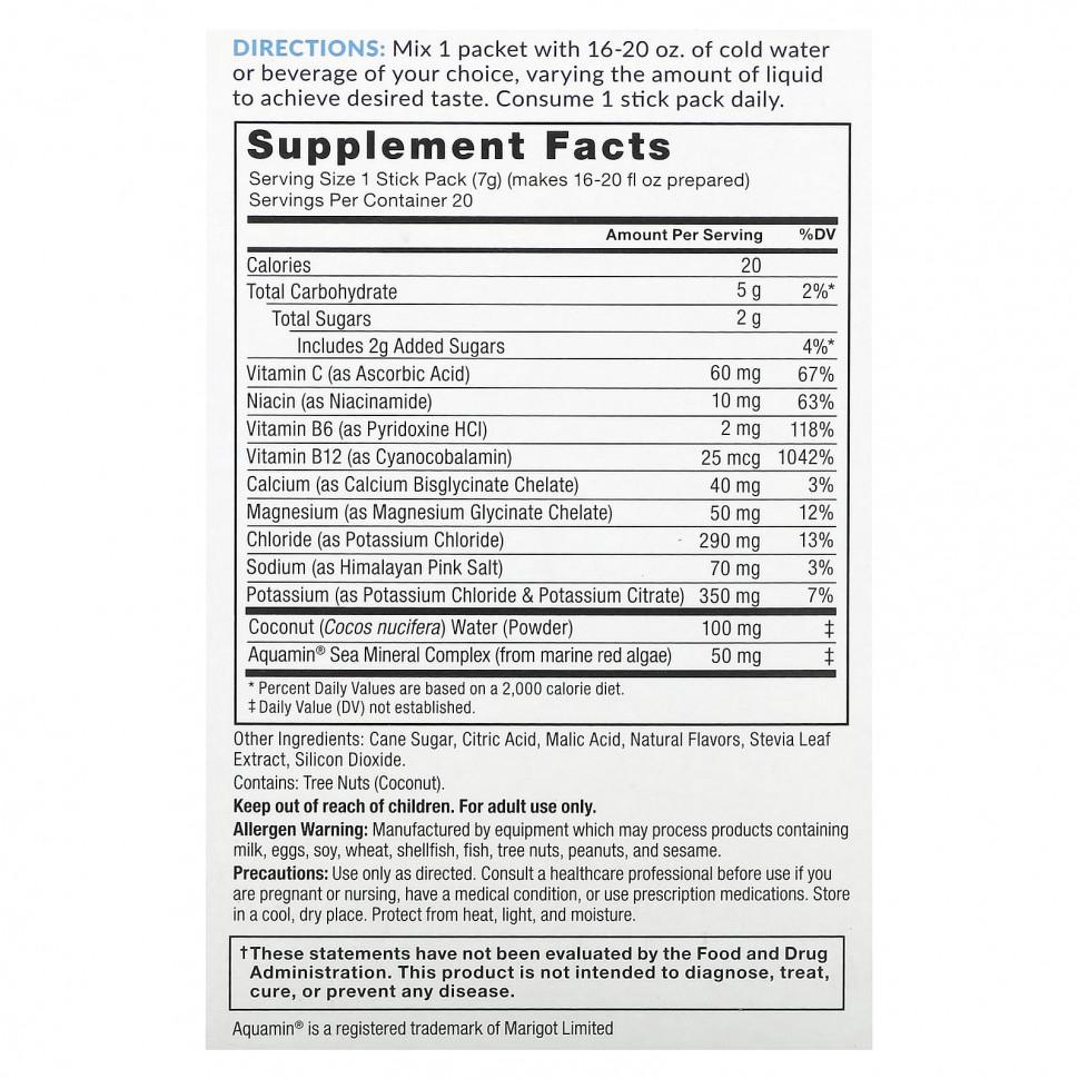 Liquid Labs ™ Hydration Optimization Matrix ™ содержит пять основных электролитов, кокосовую воду и комплекс морских минералов Aquamin®. С добавлением натурального тростникового сахара для ускорения усвоения каждый глоток увлажняет вас лучше и быстрее, чем вода. В удобных упаковках в стиках Liquid Labs, содержащих в 3 раза больше электролитов и в 10 раз меньше сахара, чем в ведущих спортивных напитках, вы сможете избежать обезвоживания в любое время дня.