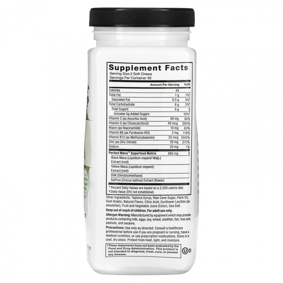 Каждая порция содержит смесь черной и желтой маки с витаминами, минералами и антиоксидантами. Он также содержит шафран и DIM — ингредиенты, поддерживающие настроение и баланс. Всего две вкусные жевательные таблетки в день — это все, что вам нужно, чтобы зарядить организм энергией, улучшить настроение и укрепить сексуальное здоровье.