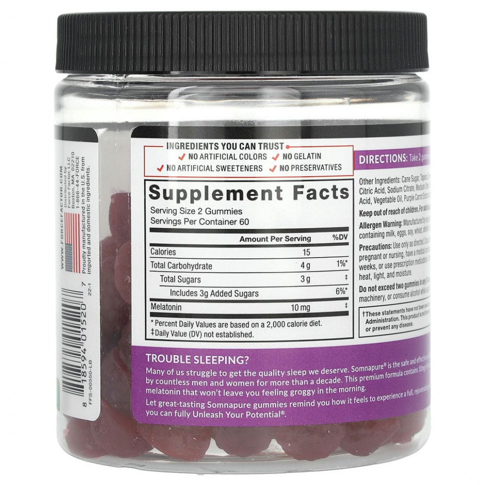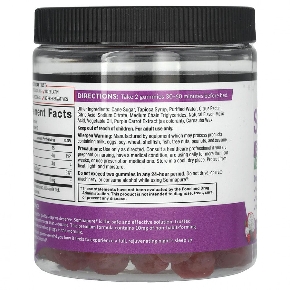 Многим из нас сложно получить качественный сон, которого мы заслуживаем. Somnapure® — это безопасное и эффективное решение, которому уже почти десять лет доверяют бесчисленное количество мужчин и женщин. Эта формула премиум-класса содержит 10 мг мелатонина, не вызывающего привыкания, который не заставит вас чувствовать сонливость.