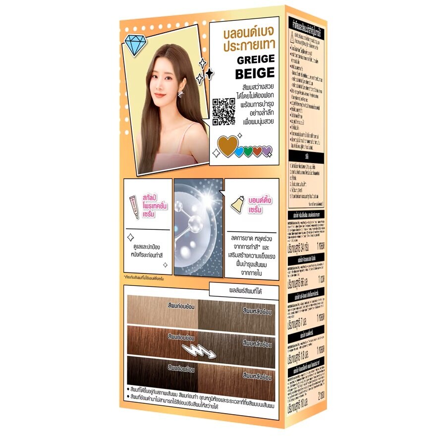 Freshlight Milky Color Super high Greige Beige A Creamy Milky format of hair coloring with special High Lifting Power foreven vivid hair Color without having to bleach your hair getting your dream hair color easier. Come with Scalp Protection Serum to relieve irritation during coloring, Bonding Serum to protect inner hair structure with long lasting hair color protector, and Color lock treatment x 2 to nourish and prolong your hair color making your hair smooth soft and shiny plus teh color last longer. Freshlight comes with a comb bottle for your convenience at use so you could easily apply evenly on your hair.