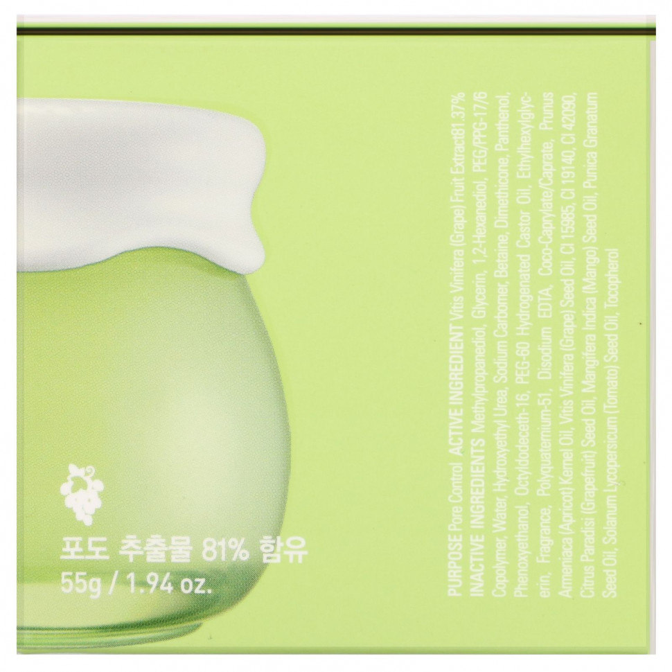 Этот крем, содержащий экстракт зеленого винограда с богатым таниновым компонентом (81%) вместо воды, эффективно сужает поры и делает кожу гладкой и мягкой. Средство уменьшает количество пор и кожного жира, улучшает текстуру кожи, сглаживая неровности, тщательно ухаживает за расширенными порами. Пантенол успокаивает раздраженную кожу, в то время как масло виноградных косточек и масло косточек грейпфрута из комплекса масел, полученных из косточек фруктов, помогают поддерживать чистоту и свежий вид кожи. Крем с зеленым виноградом имеет нежную текстуру и подходит для чувствительной кожи, что подтверждено соответствующим тестированием.