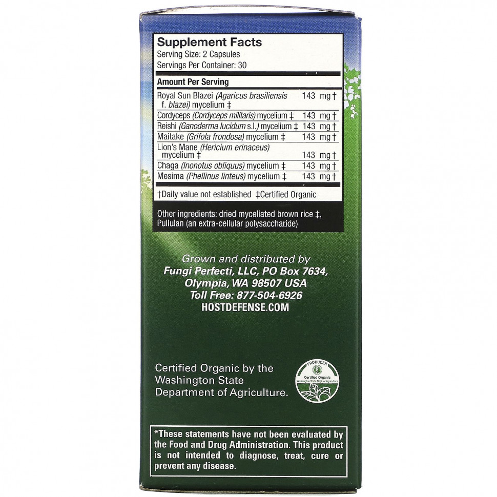 Host-Defense Stamets 7® включает активированный, высушенный до оптимальной кондиции, сертифицированный органический грибной мицелий с полным спектром компонентов: >,55% (550 мг в 1 порции) полисахаридов и множество внеклеточных компонентов, включая пребиотики, необходимых для поддержания естественного иммунитета.
