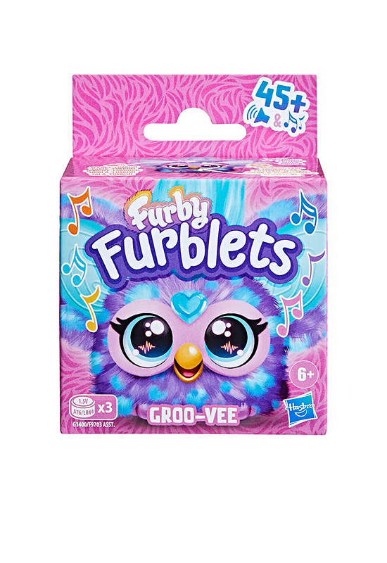 Turn up the jams with Groo-Vee the electronica FURBY Furblets friend! Hear over 45 rave tunes and sounds with this mini Furby electronic toy for girls and boys 6 years and up. Groo-Vee has purple and blue spotted fur that looks almost like another certain Furby we all know and love.