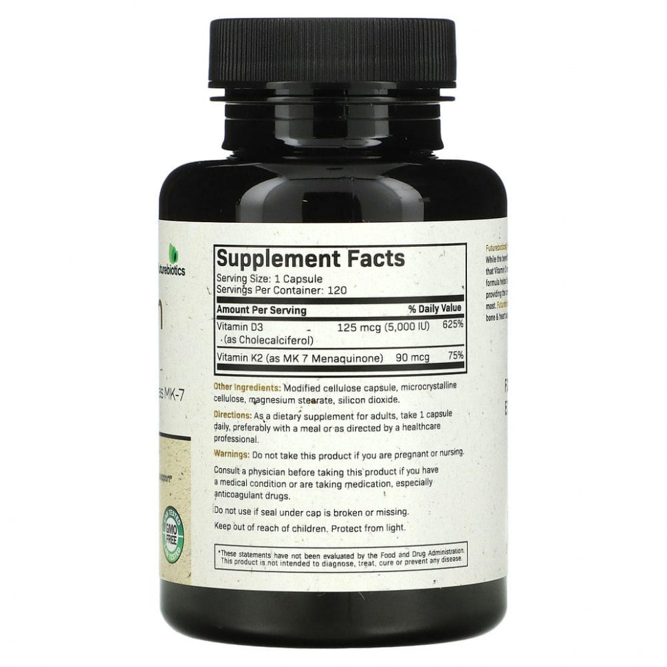Витамины K2 + D3 Futurebiotics® — идеальное сочетание. Хотя преимущества витамина D хорошо известны, многие не понимают, что для максимальной эффективности витамину D нужен витамин K2. Эта формула способствует правильному усвоению кальция с D3, обеспечивая при этом его правильное распределение в костях там, где он вам нужен больше всего. Витамины K2 + D3 Futurebiotics® — это действительно идеальная пара для поддержки здоровья костей и сердца.*