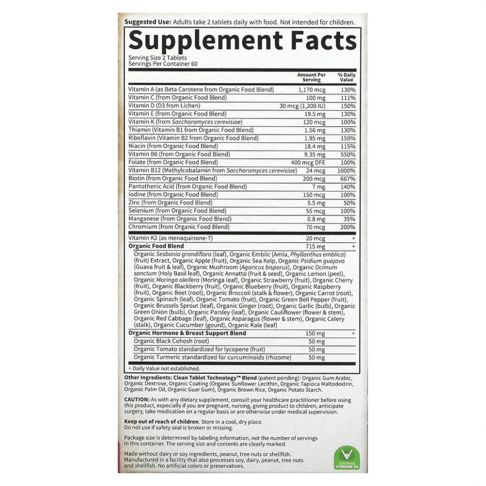 Наконец-то вы можете приобрести цельнопищевой мультивитаминный комплекс, который прошел сертификацию как органический продукт, проверен на отсутствие ГМО и изготовлен из натуральных, полезных и питательных продуктов.