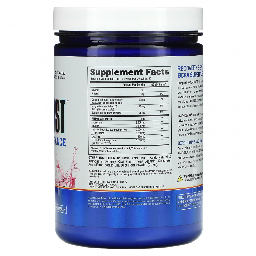 Gaspari AMINOLAST® — это последнее достижение в области добавок, содержащих аминокислоты с разветвленной цепью и электролиты, без углеводов. Наши BCAA насыщены электролитами, что обеспечивает полное восстановление после изнурительных тренировок. AMINOLAST® отличается инновационным способом производства и отличным вкусом.