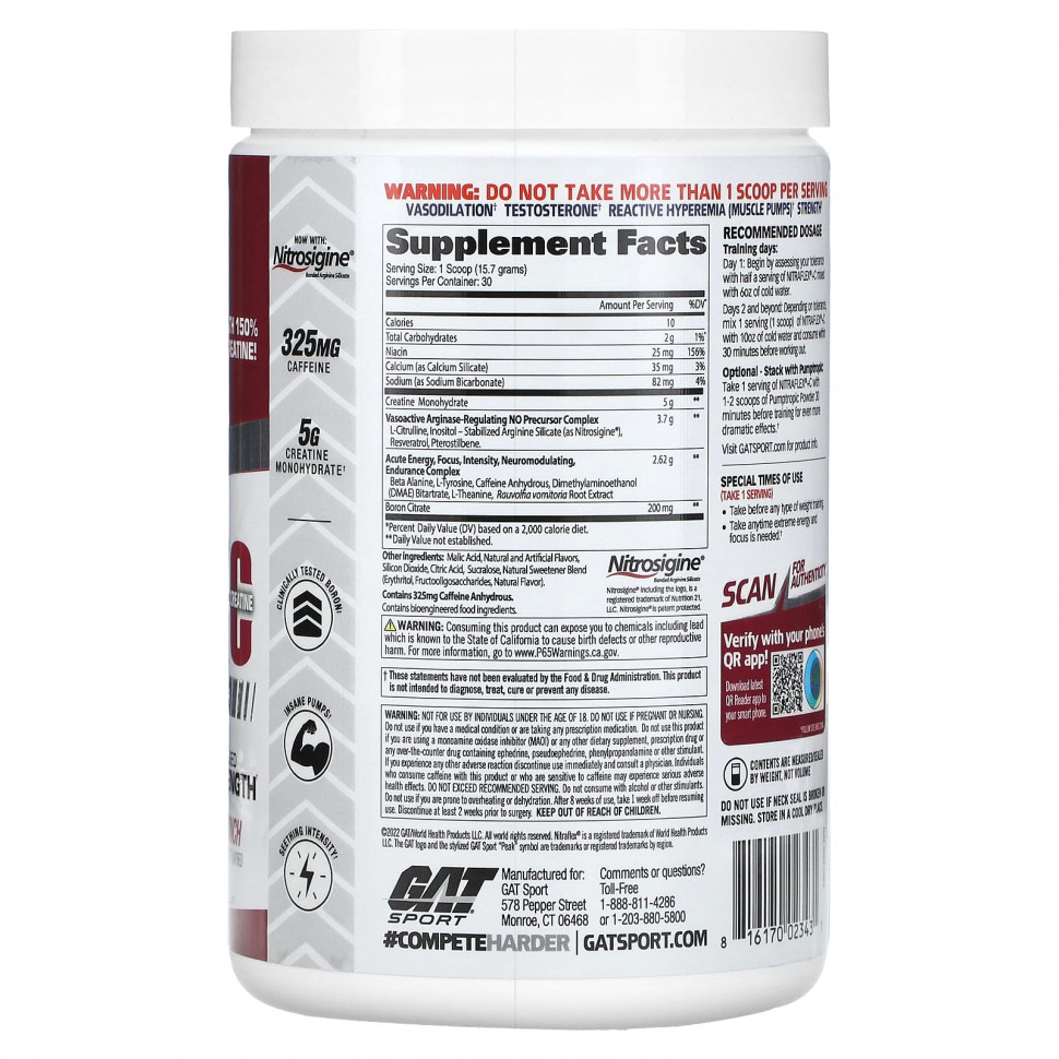 На основе Nitrosigine®: В этой новой формуле Nitrosigine® является единственным источником аргинина. Доказано, что нитрозигин ингибирует фермент, ответственный за расщепление аргинина, что делает его лучшим выбором среди добавок с аргинином и идеальным синергическим партнером для L-цитруллина. Научно подтверждено, что действие препарата Нитрозигин® сохраняется в течение 6 часов после приема препарата. Помимо расширения кровеносных сосудов (накачка) и повышения общей производительности, клинически доказано, что Нитрозигин® повышает умственную концентрацию, что делает его действительно всесторонним и многогранным дополнением к любому препарату. эффективная предтренировочная формула.